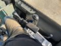 Hydraulisk justerbare beltebredding. Styres via knapp og hendel (for skjær).