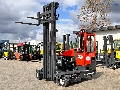 This forklift is perfect for industries that require effective movement of long loads in narrow spaces, such as wood, steel, or pipe sectors. Its multidirectional drive system allows for easy maneuvering and optimized warehouse space usage.