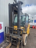 CAT 4.5 Tonne Diesel with a full cab, side shift and fork positioner, 4 metre lift height, duplex mast. Very original machine with non marking tyres.