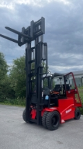 Keskiraskaan sarjan Sähkötrukki valmiina töihin. Koneesta löytyy kaikki tarvittavat varusteet työntekoon. Ajomoottoreita 2kpl (15kw + 15kw), regeneroiva jarrutusjärjestelmä, märkälevyjarrut, sähköinen seisontajarru ja paljon muuta.