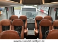 Standheizung, Holzfußbodenoptik, KlimaAnlage, Tische, Vorhänge, Gepäckablagen, Gepäcknetze, Düsenbelüftung, Leselampen, Doppelverglasung, Fußrasten, Kühlschrank, Mittel-WC, Kopf-Ledereinsätze, Reiseleitermikrofon, Fahrermikrofon