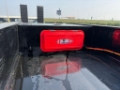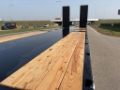 Technical Features & Accessories: The braking system is a two-line air brake with emergency and service brake chambers. The 24V electrical system meets SAE/ADR standards and provides all-around lighting. The loading platform consists of a combination of 6/7 mm chequered steel and wooden edges, and the hydraulic rear loading ramps (2800 x 900 mm) are reinforced with steel bars.